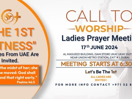 🌸 Ladies Prayer Meeting 🌸 Join us for a special evening of fellowship, encouragement, and inspiration at our upcoming Ladies Meeting! Date: June 17, 2024 Time: 6:30 pm Location: Al Masueed Building, near Union Metro Station, Dubai More info: 971 52 821 2449 Let’s come together to celebrate the strength and resilience found in knowing that...